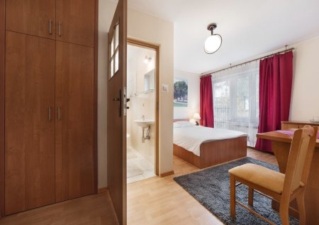 Pokój idealny dla dwóch lub jednej osoby. Wyposażony w wygodne łóżko, własną łazienkę z prysznicem, TV i czajnik elektryczny. Funkcjonalny i przytulny, zapewni ciszę i miły wypoczynek.